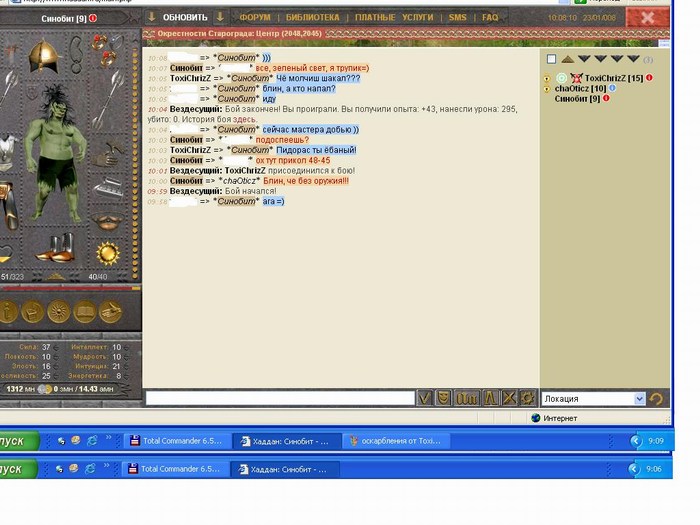 Лог боя: http://www.haddan.ru/blog.php?id=25758032 Скрин с оскорблением: |