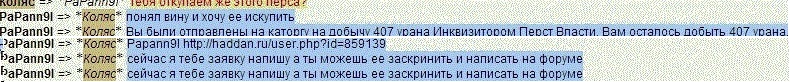 2. Вы были отправлены на каторгу на добычу 407 урана Инквизитором Перст Власти 3. Вам осталось добыть 407 урана 4. Вину осознал 5. Коляс Пишу за него с его слов, он не может зайти на форум. |